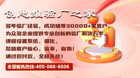 如果企业想做验厂辅导,不妨考虑一下创思维验厂之家,创思维验厂之家是专业的验厂辅导公司,已经为全国各地上万家企业服务过,在全国多处设有办事处,会就近安排老师进场辅导,我们的辅导原则是帮助企业通过验厂,深圳市创思维是一家正规专业的验厂咨询、验厂辅导、认证辅导公司,一切以合同条款为准,不乱收费,并尽可能为企业节约成本,通过后付款!