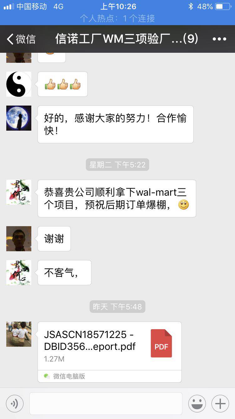 本文来源:验厂之家网 - 祝贺东莞市信诺运动用品有限公司2020通过Wal-Mart沃尔玛验厂审核