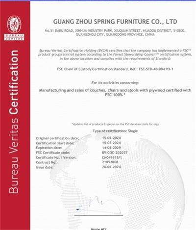 本文来源:验厂之家网 - 祝贺广州斯普睿家具有限公司2024年一次性成功通过BV-FSC森林认证