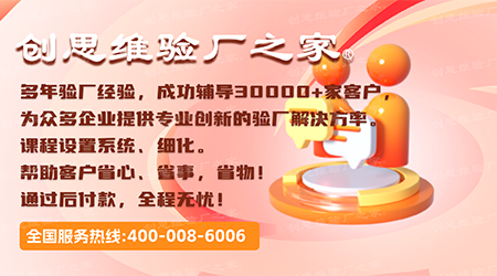 如果企业想做验厂辅导,不妨考虑一下创思维验厂之家,创思维验厂之家是专业的验厂辅导公司,已经为全国各地上万家企业服务过,在全国多处设有办事处,会就近安排老师进场辅导,我们的辅导原则是帮助企业通过验厂,深圳市创思维是一家正规专业的验厂咨询、验厂辅导、认证辅导公司,一切以合同条款为准,不乱收费,并尽可能为企业节约成本,通过后付款!