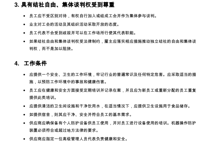 · 如提供宿舍,则其应干净、安全并符合员工的基本需求。